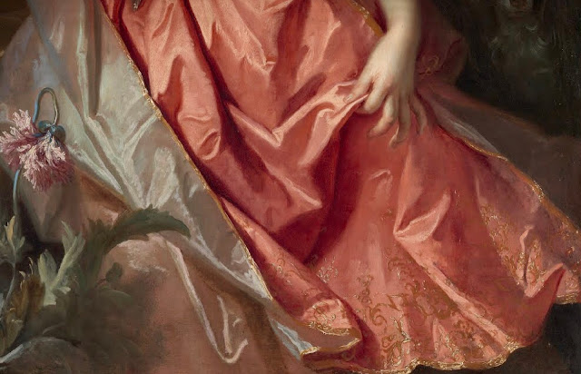 Nicolas de Largilliere, a la par que reproducía los detalles de encajes, sedas labradas, joyas y otros, en sus retratos se detuvo en poner de manifiesto esa estética.
